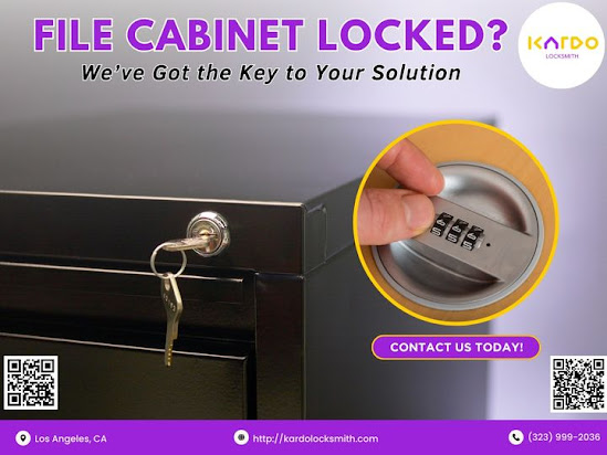 At Kardo Locksmith, we understand the importance of quick access to your documents. If your file cabinet is locked, our technicians are equipped to resolve the issue promptly. Call us today at (323) 999-2036 and get your files back in no time!